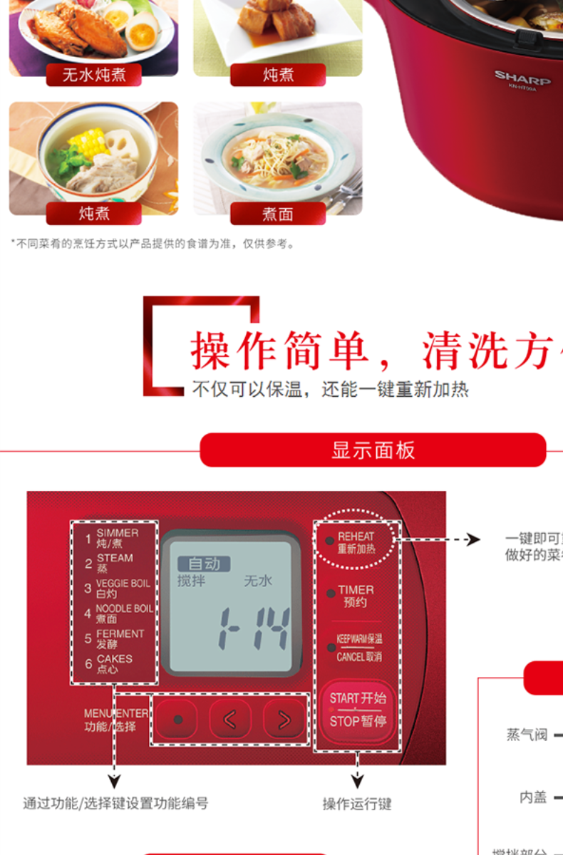 夏普电炖锅 1.6升原汁无水锅 KN-H16YA