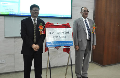 据了解,三洋半导体株式会社在半导体领域的研究历史已逾50年,其研究成果涉及种类繁多,其中功率模块,即IPM,主要用于变频空调,变频洗衣机及变频冰箱等产品,已被世界主要家电厂商广泛应用。 美的家用空调国内事业部总裁吴文新表示,联合实验室的成立标志着美的与三洋战略合作关系的正式确立,双方的合作是真正的强强联手,使三洋半导体的技术优势和美的已有的变频技术与规模优势结合,优势互补,实现共赢,在双方的共同努力下,联合实验室必将实现重大技术突破,为变频空调行业的核心技术发展做出贡献,带领我国从空调制造大国迈向技术强国。