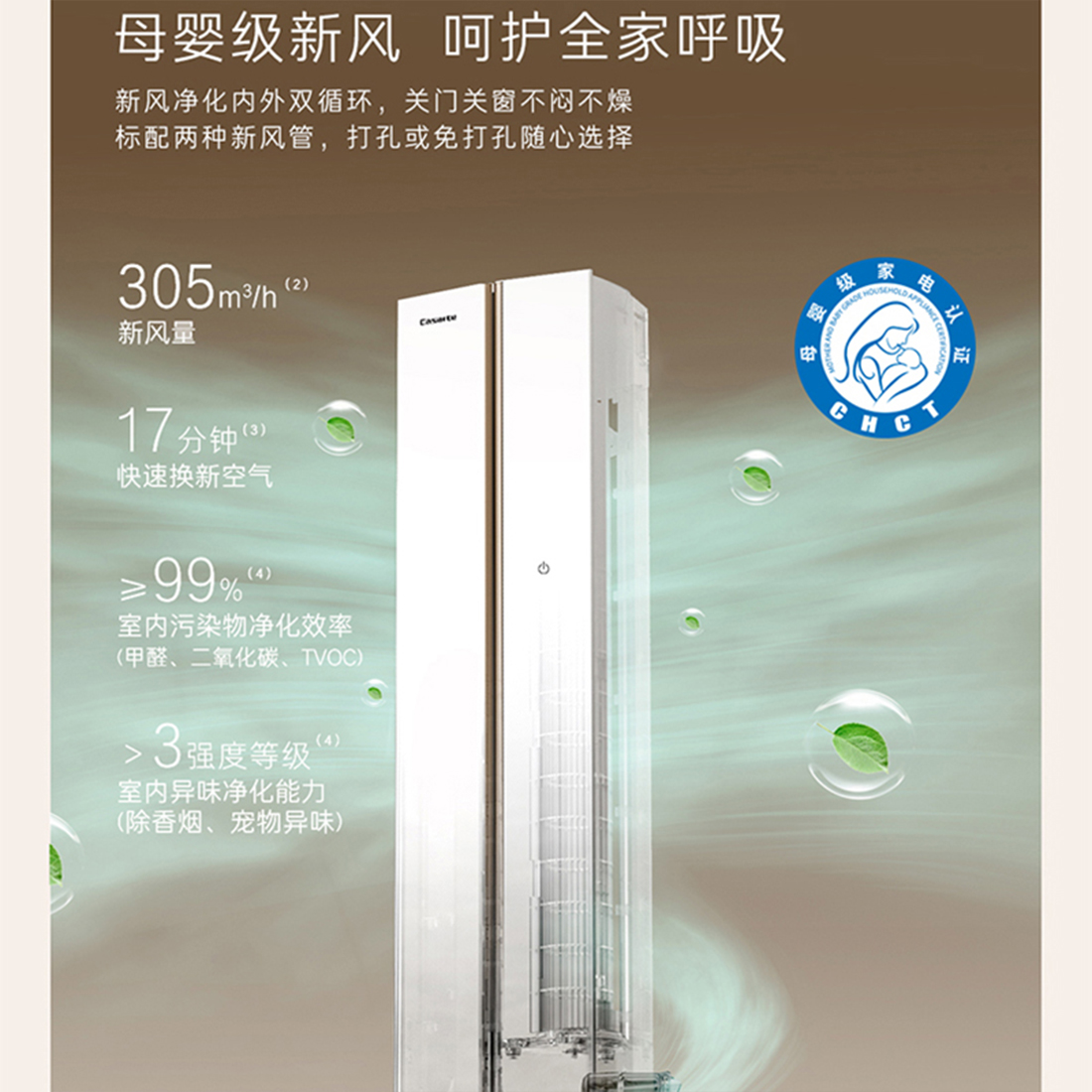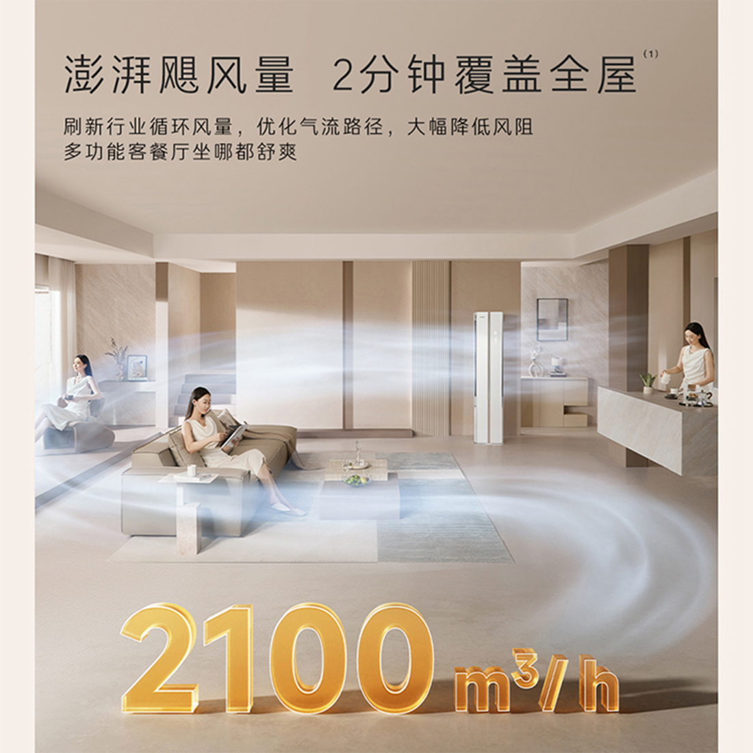 新风系统,平隐控风,凉芯桥3.0科技,云雅灰玻璃面板,循环风量2100立方米/h