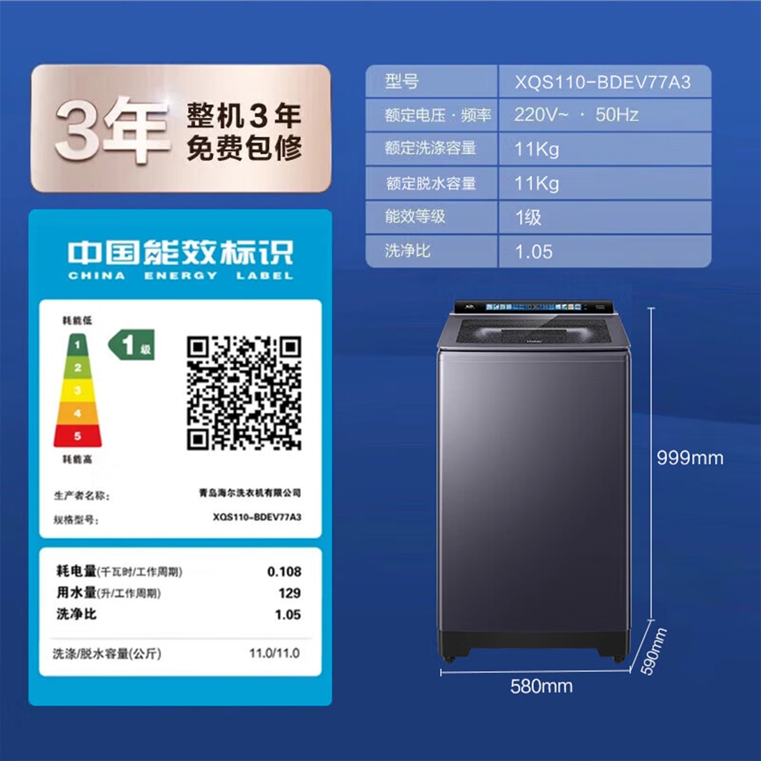 海尔11公斤波轮洗衣机XQS110-BDEV77A3