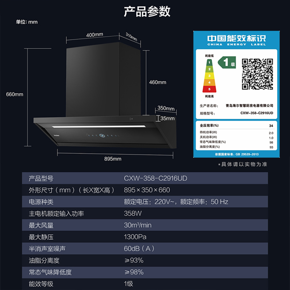 海尔吸油烟机CXW-358-C2916UD麦浪Pro