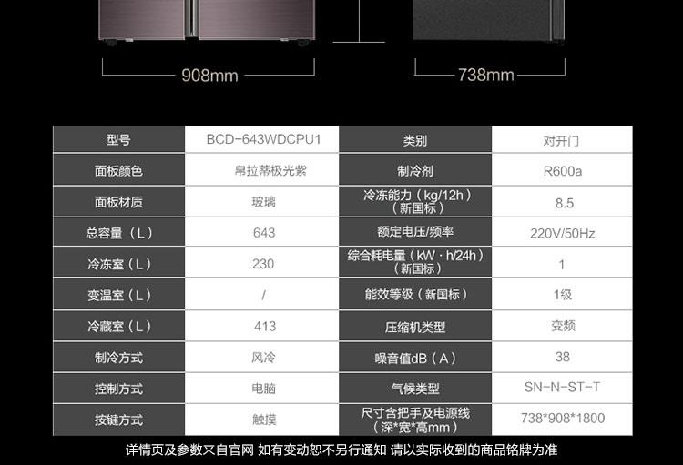 卡萨帝643升对开门冰箱 BCD-643WDCPU1