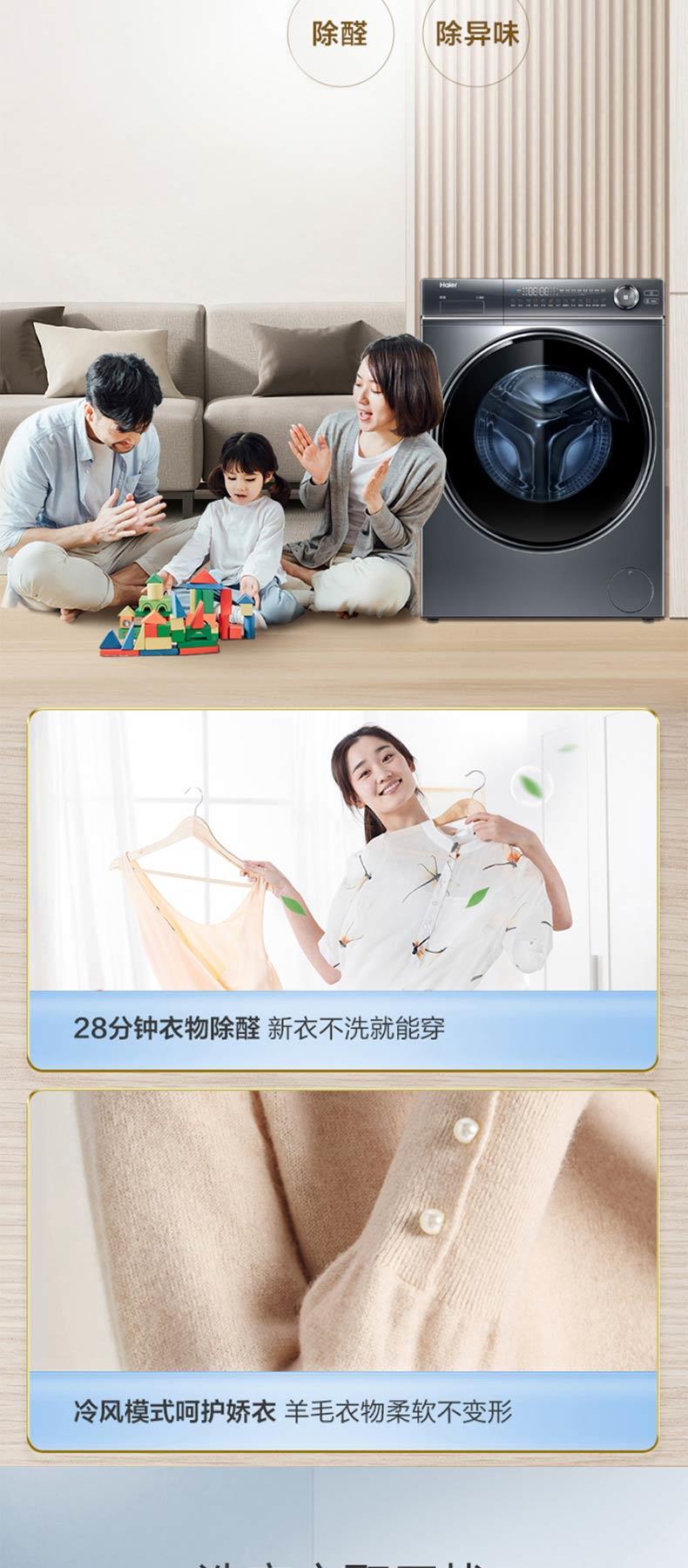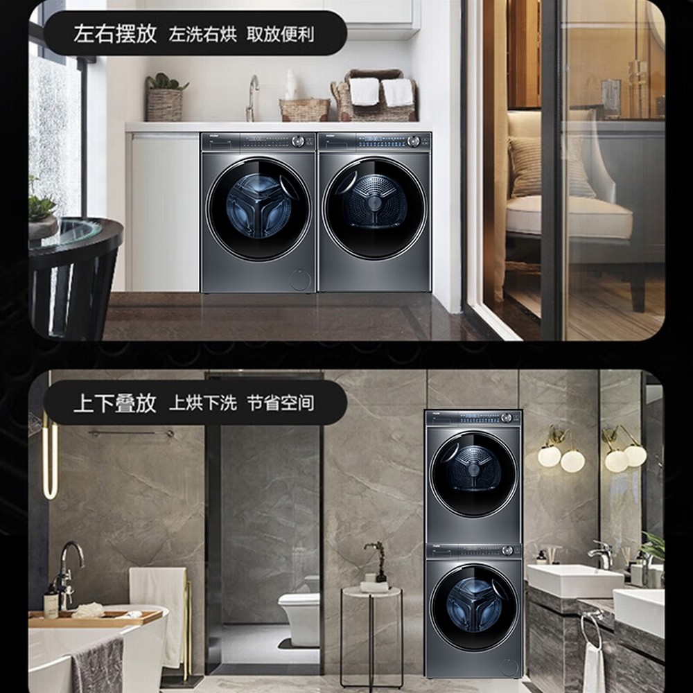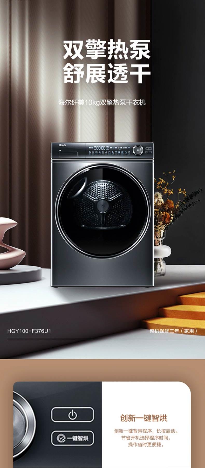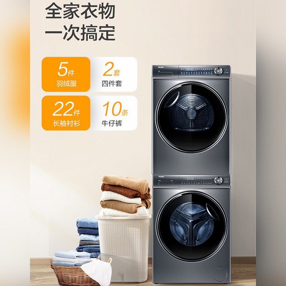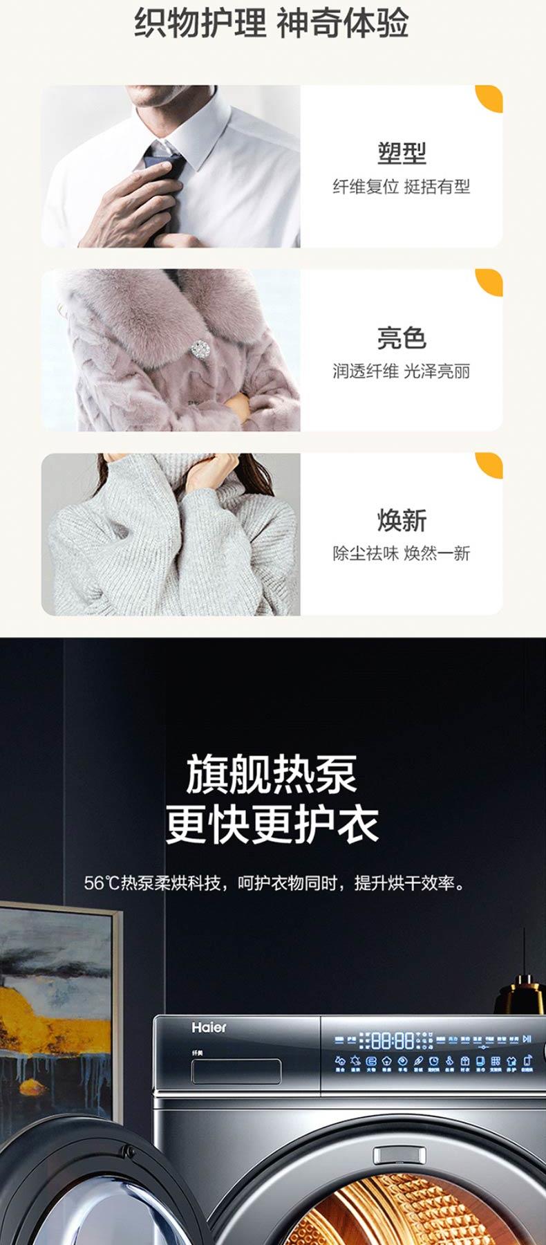 海尔新品376干衣机双擎热泵+精华洗智能投放洗衣机