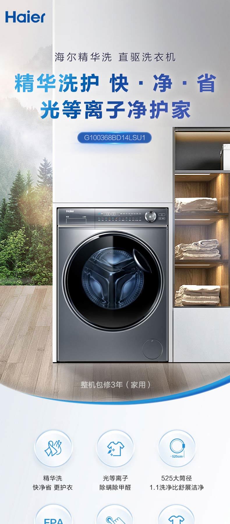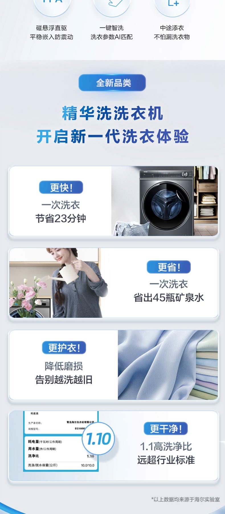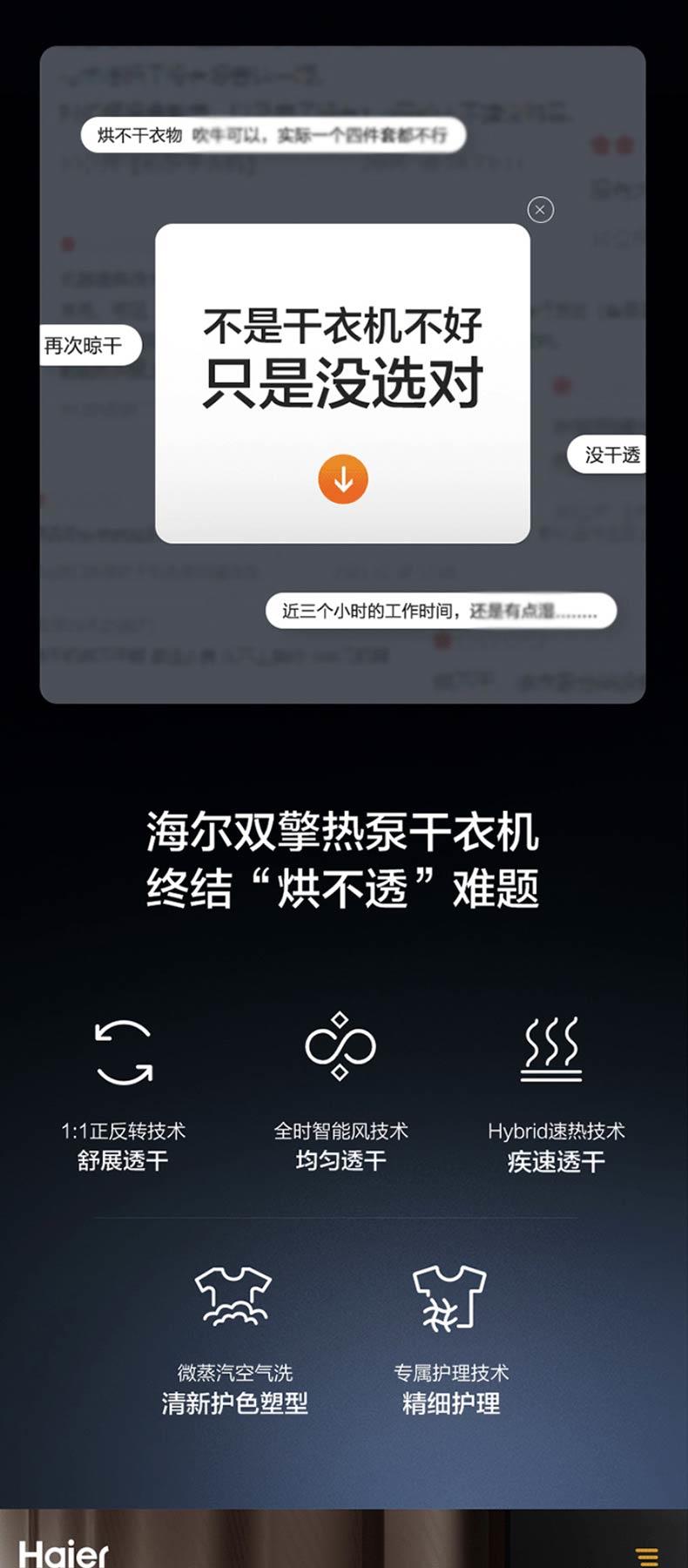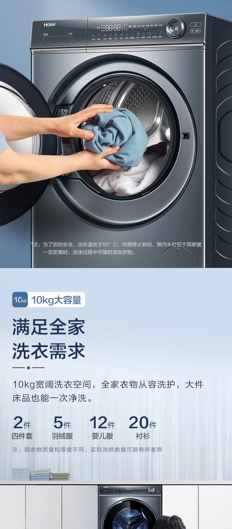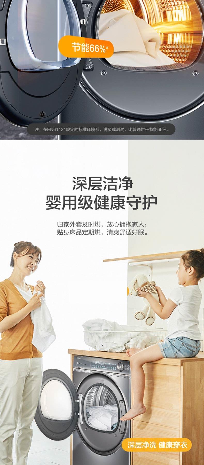 海尔新品376干衣机双擎热泵+精华洗智能投放洗衣机