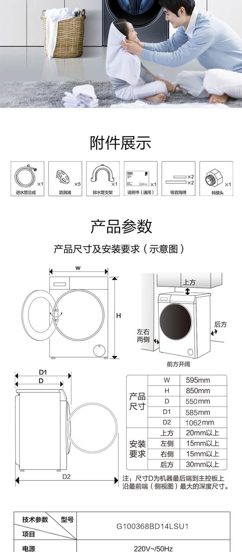 海尔洗烘组合极夜灰HGY100-F376U1/G100368BD14LSU1