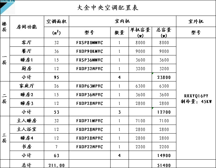 爱伦坡联体3层别墅中央空调安装工程空调使用面积为211平方米。在与业主沟通时,业主提出使用空调要操作简单,噪音要小,故推荐选用大金VRVⅢ直流变频中央空调系统。大金VRVⅢ采用直流变频技术,能有效提高能源效率;在运转过程中,能根据室外温度及系统运行状况采用最佳化霜时机。大金空调控制器为液晶面板操作,简便易操作,与房间内电气开关搭配和谐。大金VRVⅢ空调室内机形式多样,选型自由,在低速运转时噪音仅为35分贝。在设计中,为配合装潢吊顶,在卧室和卫生间选用大金天花板内藏风管式(超薄型),其机身厚度仅有200mm;客厅因层高达4米以上,选用内藏风管导管式,使用效果完全达到业主要求。 |