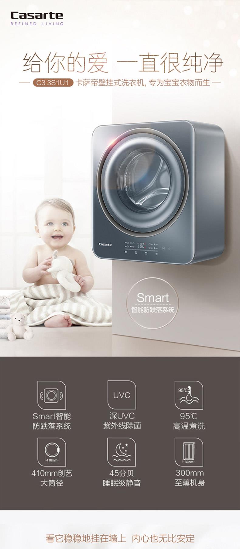 【仅售样机】卡萨帝3公斤迷你洗衣机C3 3S1U1壁挂