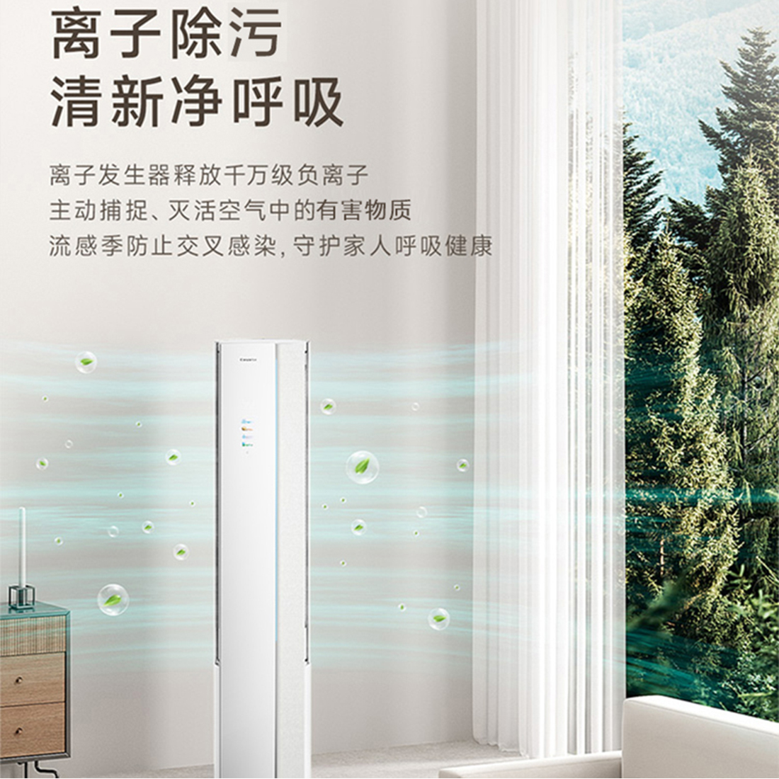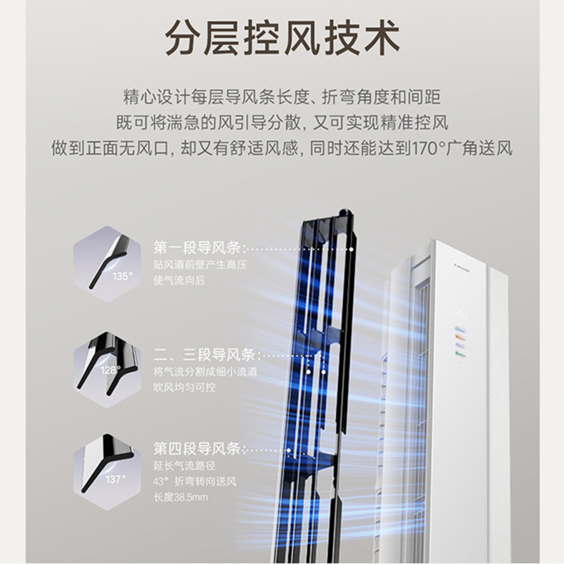 一级能效,能效比5.05;分层控风;凉芯桥3.0;离子除菌