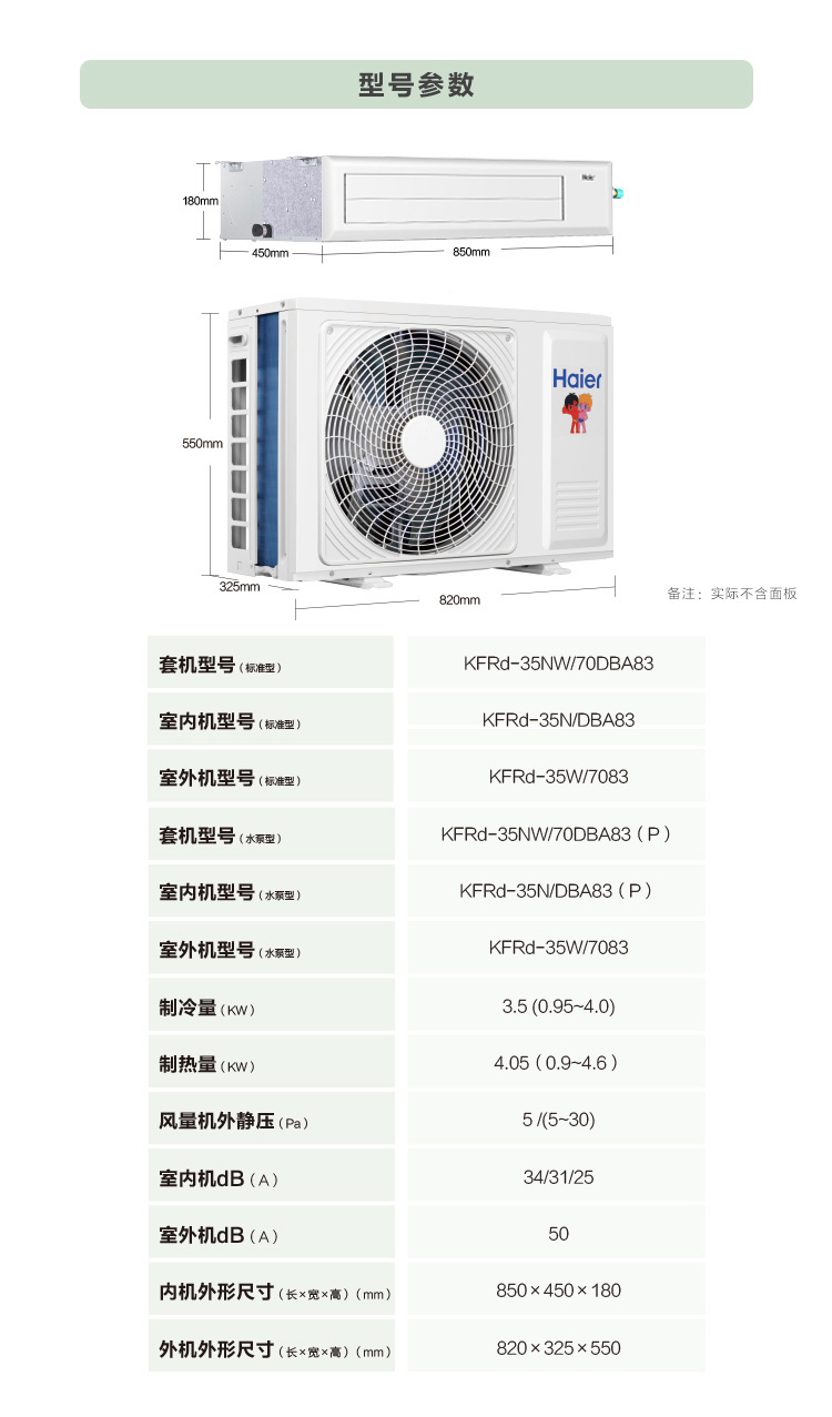 海尔风管机劲风1.5匹KFRd-35NW/70DBA83 三级能效