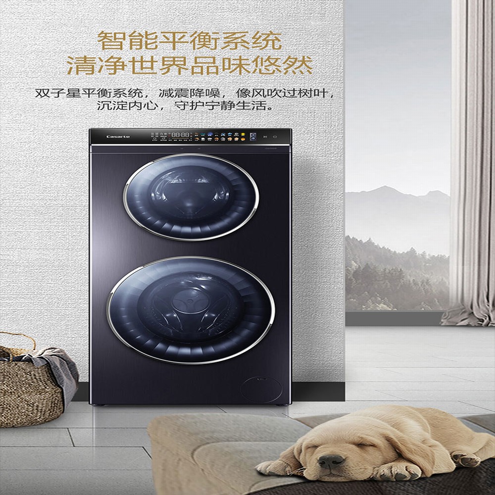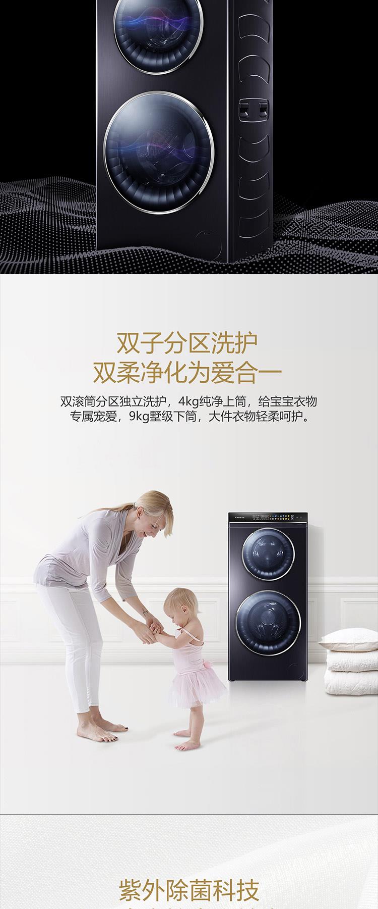 晶钻紫洗烘一体直驱变频双子洗衣机