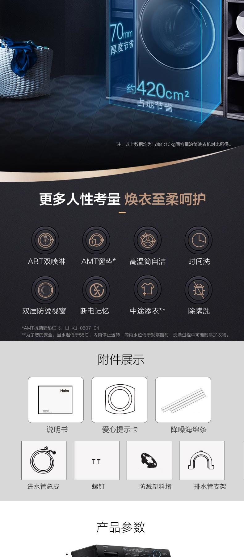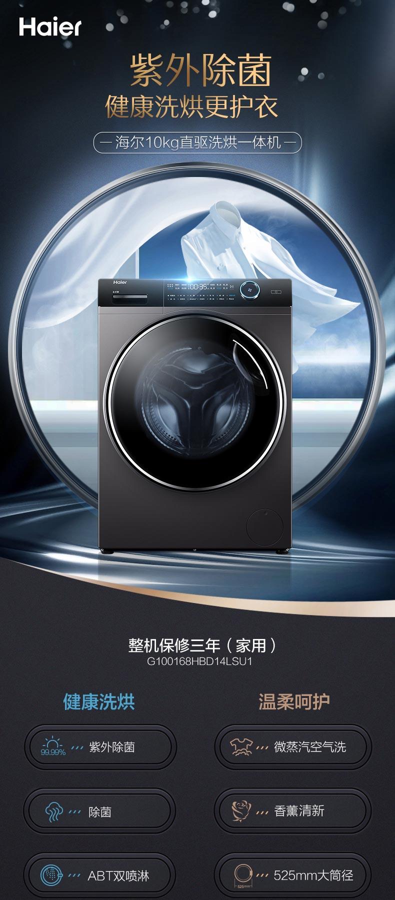 海尔滚筒洗衣机10公斤G100168HBD14LSU1