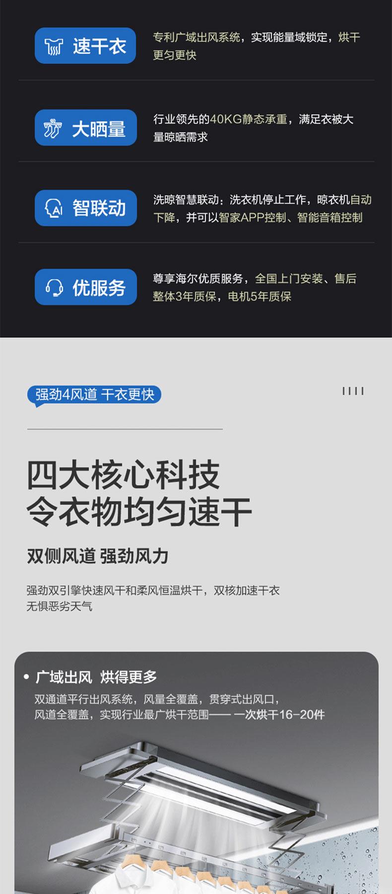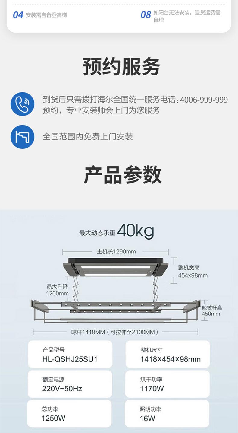 海尔智能晾衣机HL-QSHJ25SU1全嵌带烘干