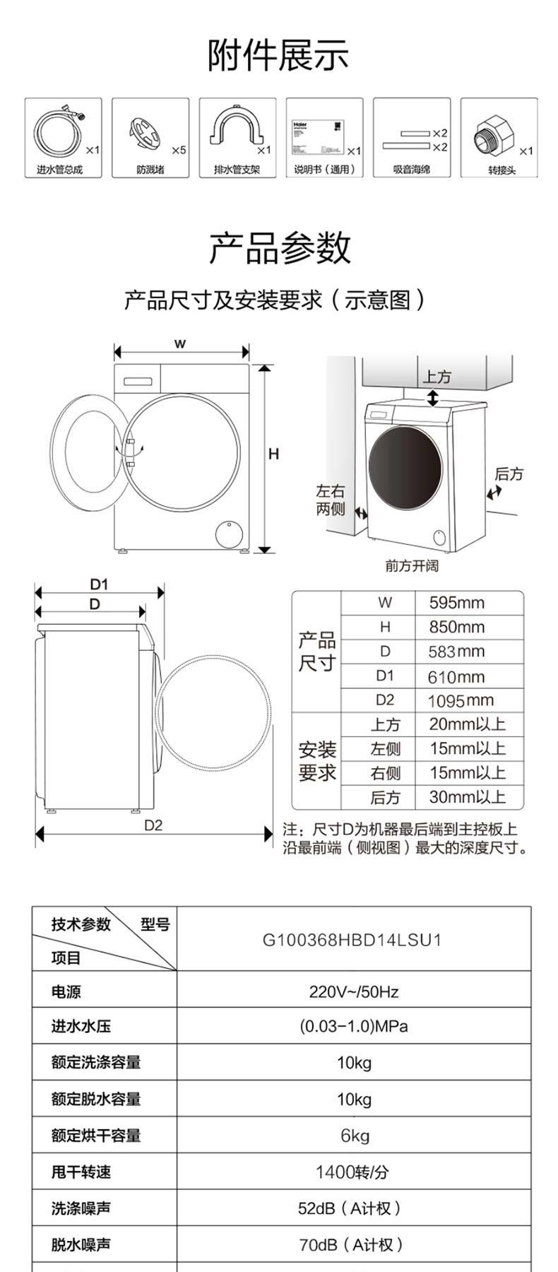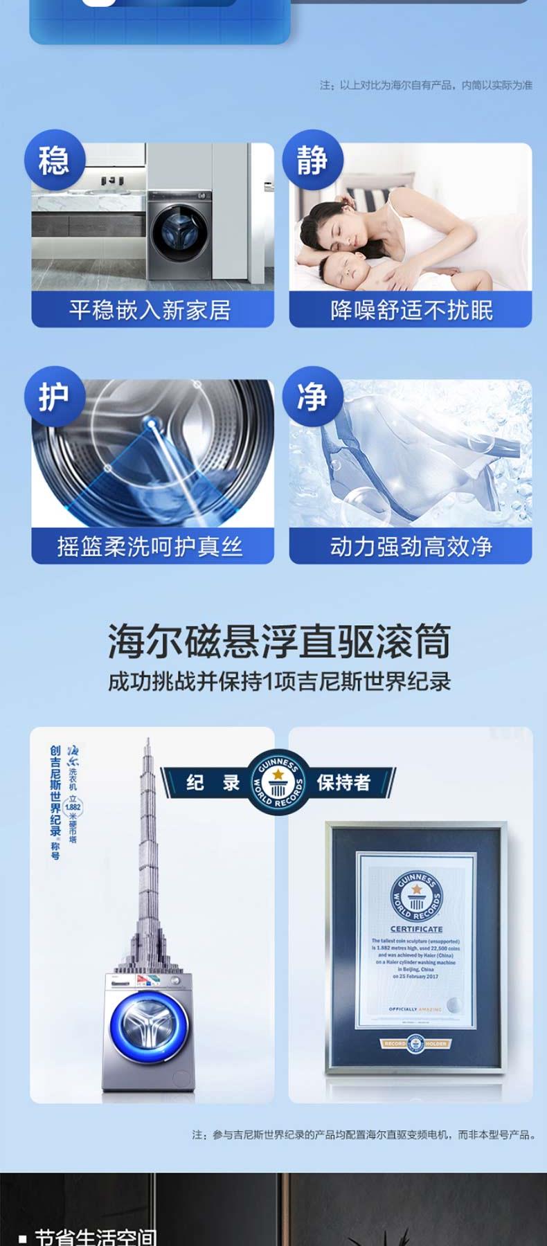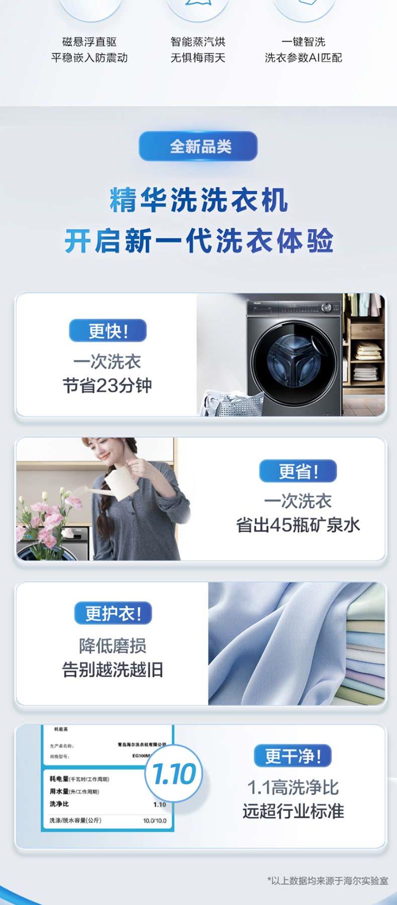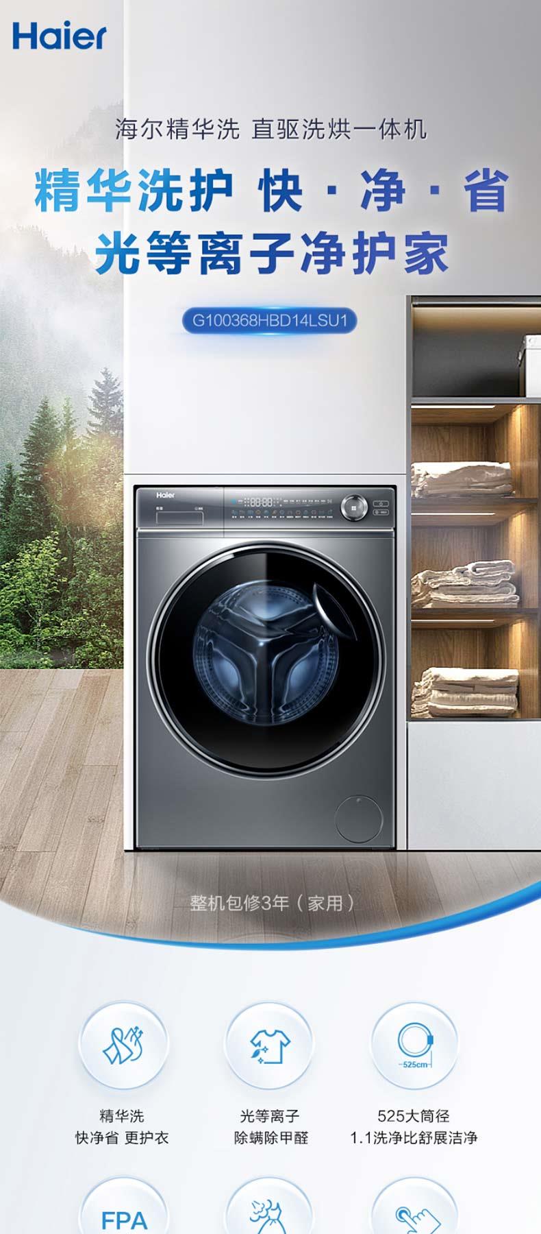 海尔滚筒洗衣机G100368HBD14LSU1精华洗10kg