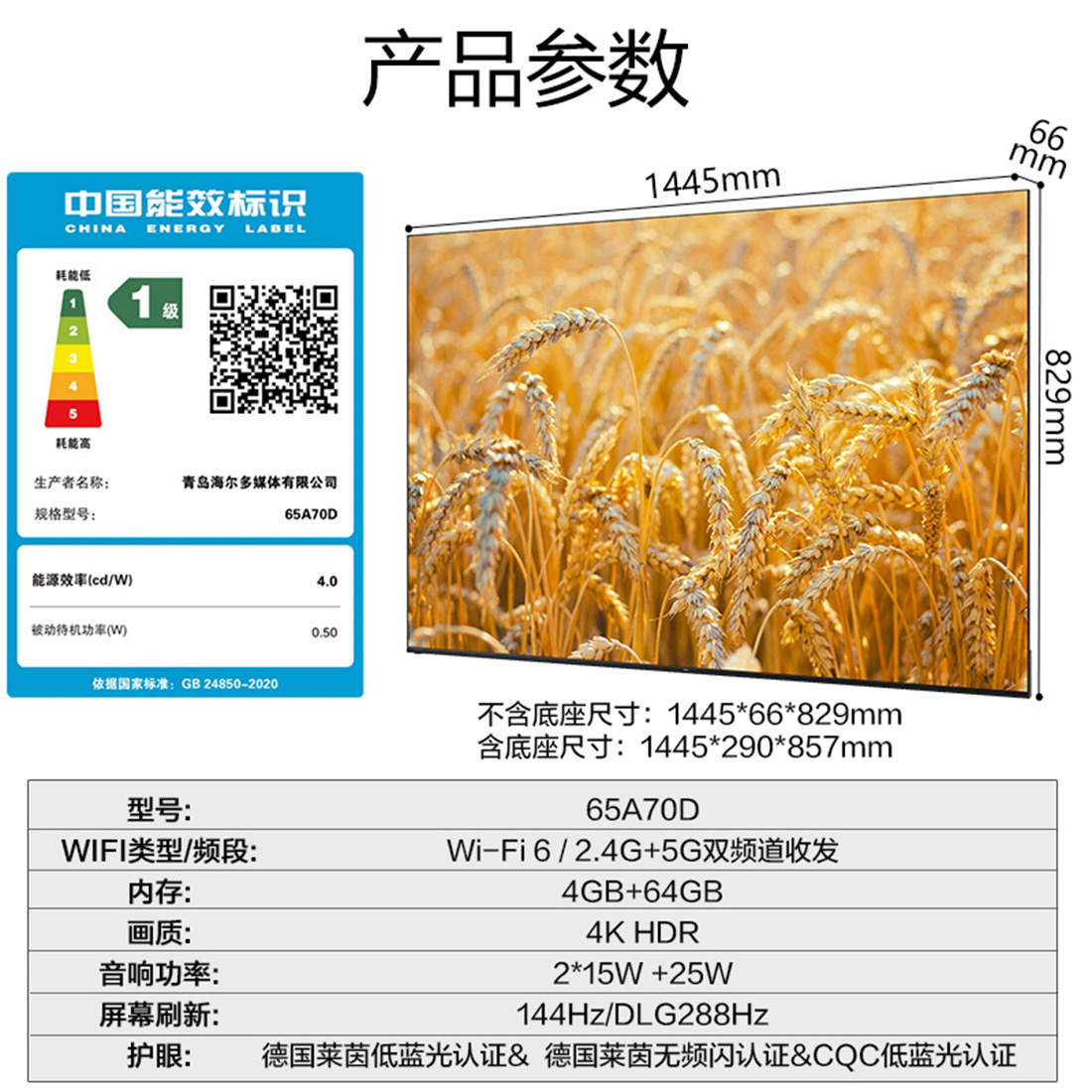 海尔65寸平板电视65A70D麦浪系列MiniLED