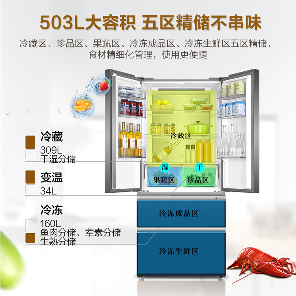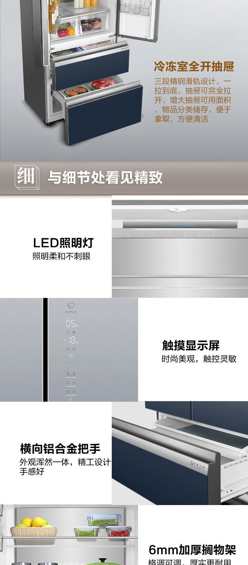 冷藏冷冻全空间保鲜 干湿分储 金属匀温背板 一级变频 APP智控 T.ABT净味