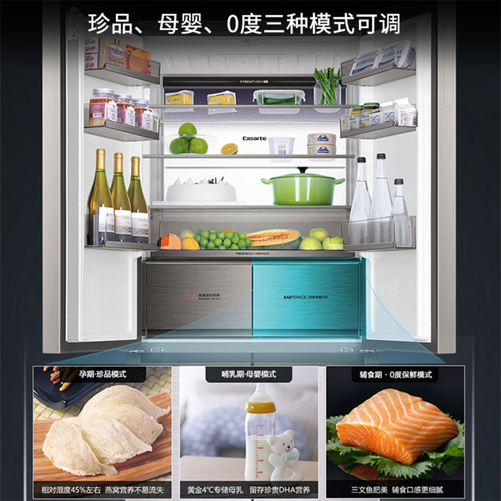 C标T型多门零嵌冰箱 氮氧双控保鲜 画香银