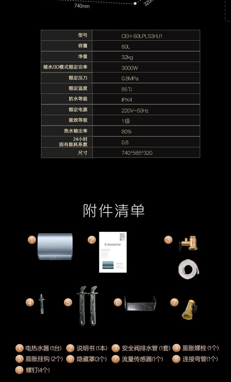 卡萨帝双胆电热水器CEH-60LPLS3HU1