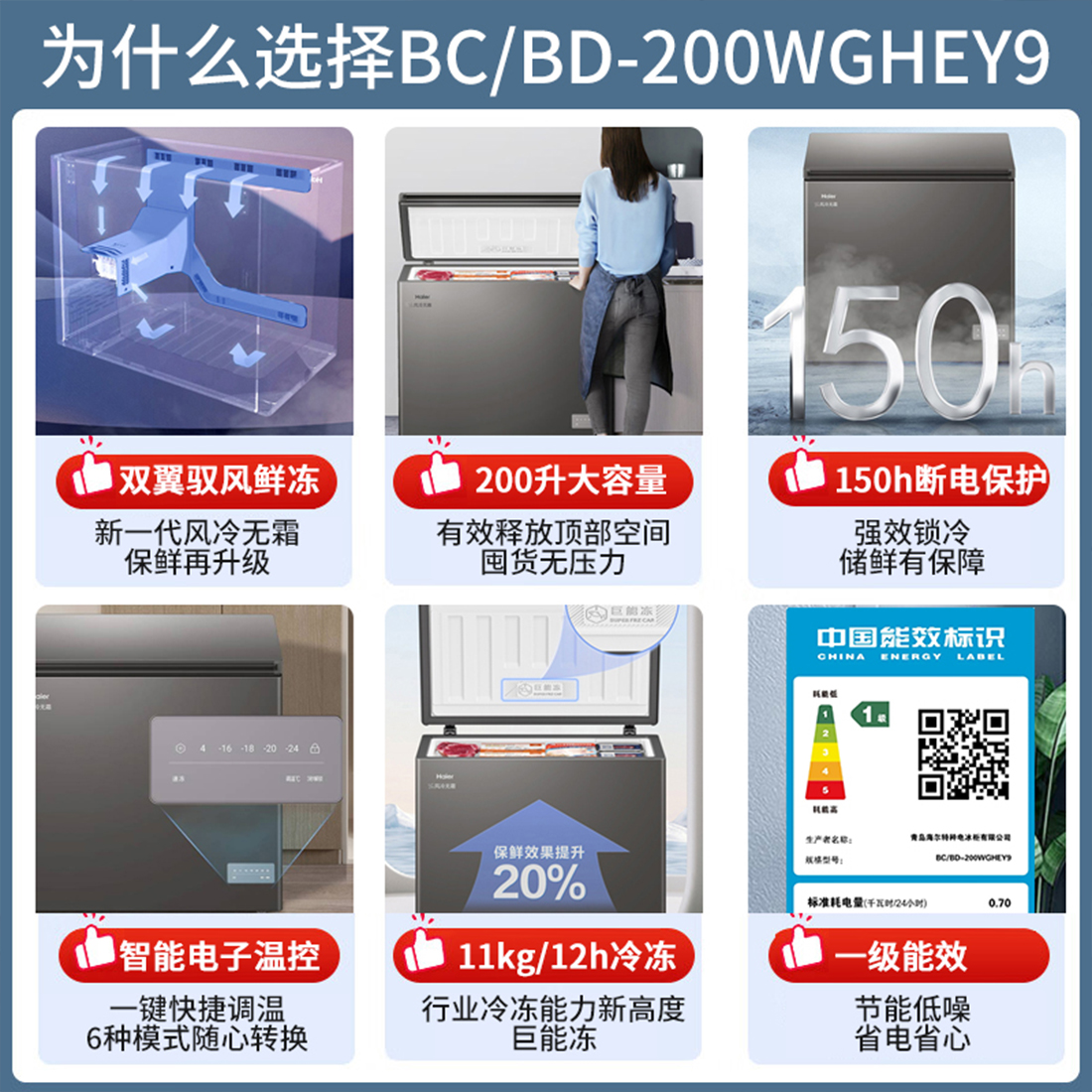 海尔冷柜BC/BD-200WGHEY9 风冷无霜 一级能效