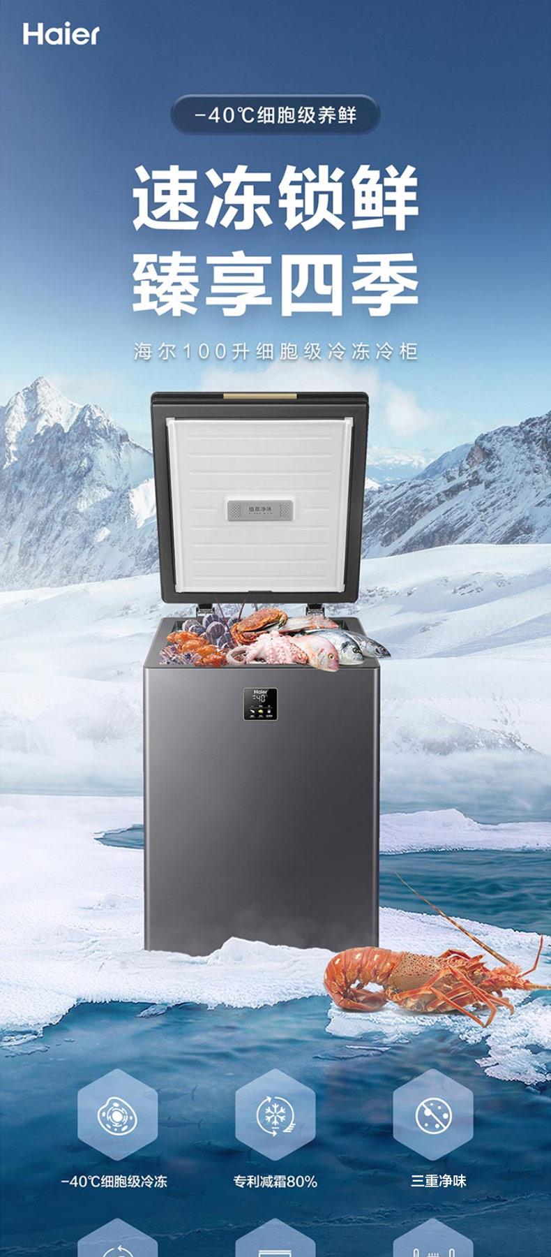 海尔小富豪卧式冷柜BC/BD-100GHEPG 星韵银 新品