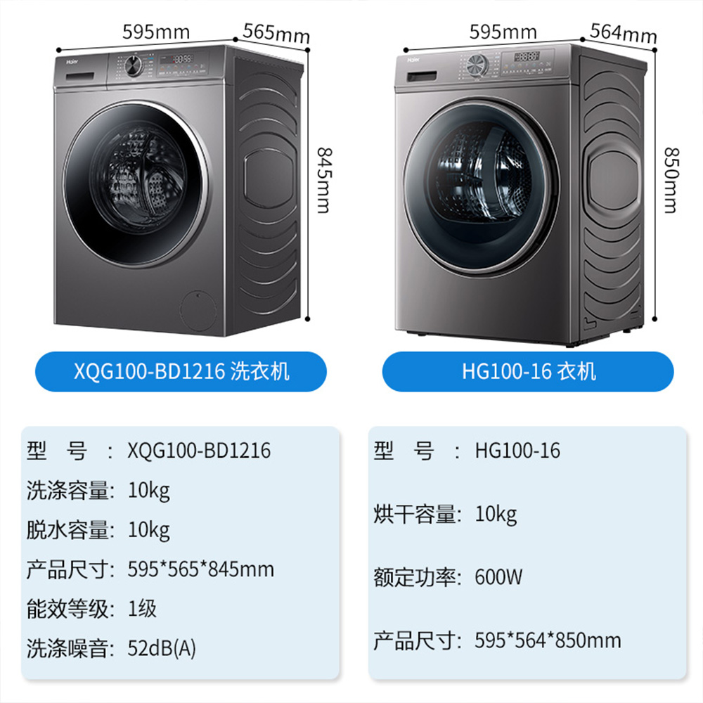 海尔K系列洗烘组合16套XQG100-BD1216/HG100-16